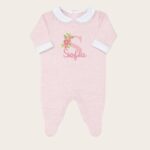 Possui gola e punhos com acabamento em greper, que trazem um toque de sofisticação e exclusividade. O grande diferencial está no bordado personalizado com a inicial e o nome do bebê, criando uma peça única e especial para momentos inesquecíveis, como saída da maternidade ou ensaios newborn.